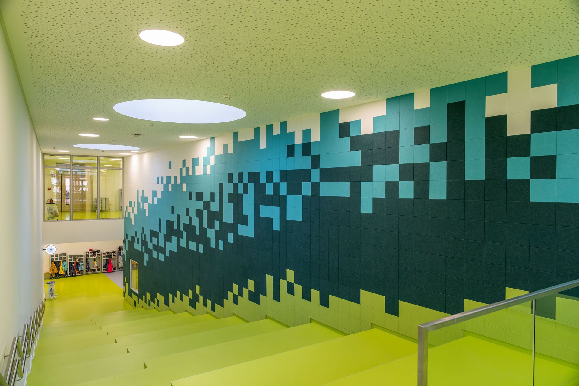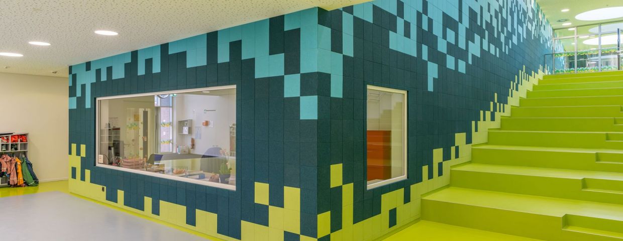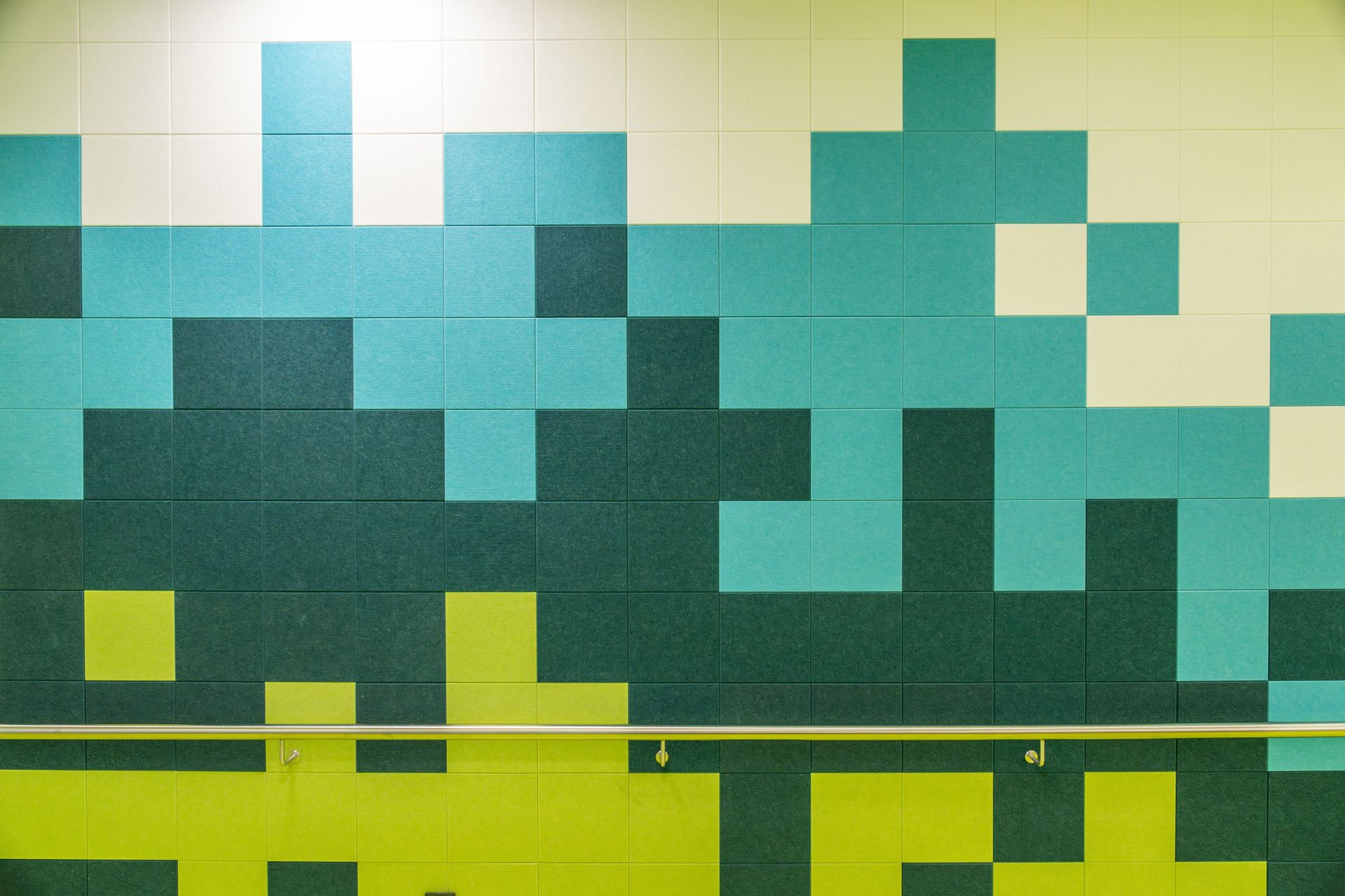 Die Akustik-Wandverkleidung vereint funktionale Raumakustik mit ästhetischem Design. Durch den Einsatz von Recyclingmaterialien entsteht eine moderne Lösung, die nicht nur die Klangqualität verbessert, sondern auch ein starkes Statement für Umweltbewusstsein und nachhaltige Architektur setzt.