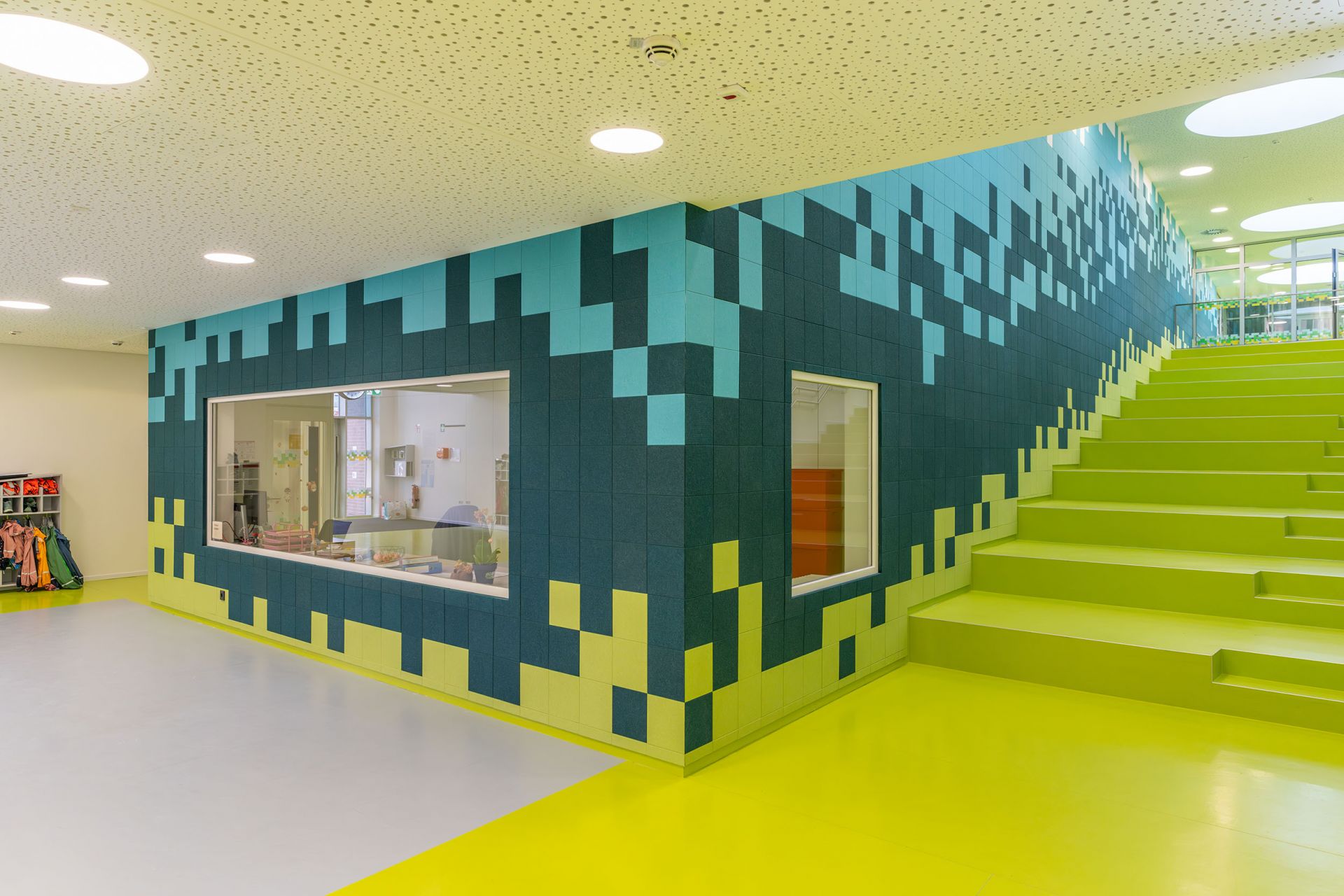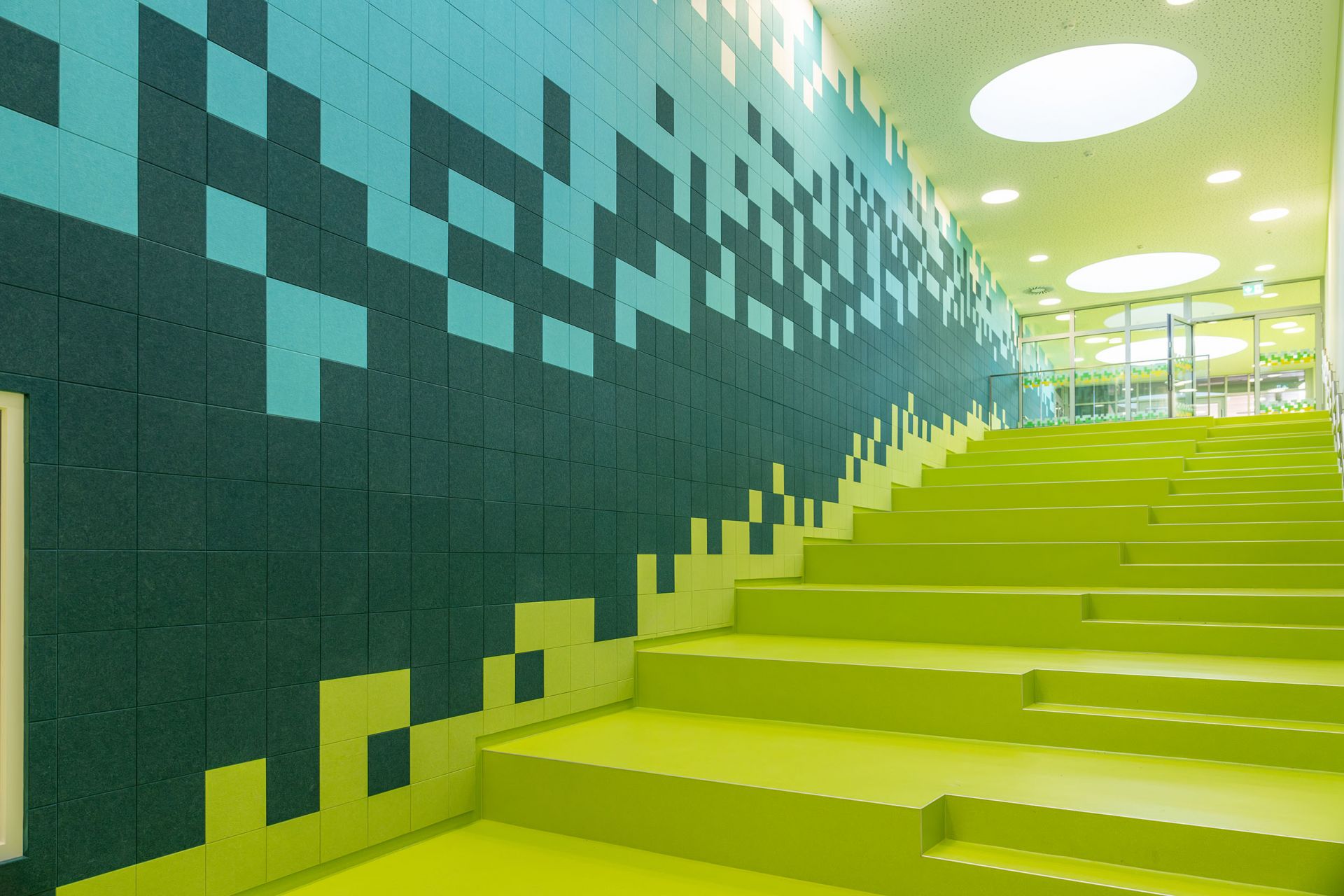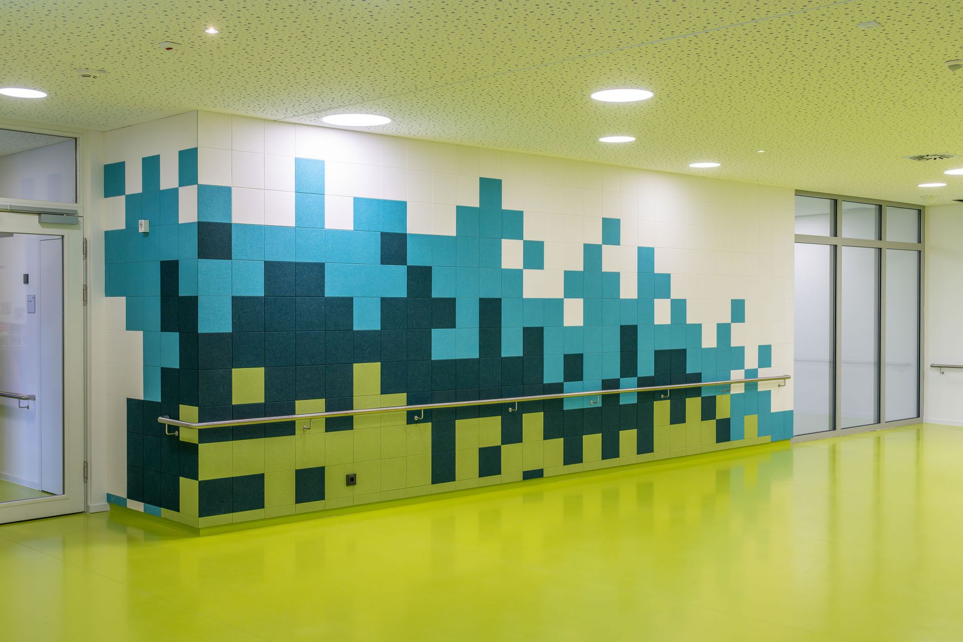 Die Akustik-Wandverkleidung vereint funktionale Raumakustik mit ästhetischem Design. Durch den Einsatz von Recyclingmaterialien entsteht eine moderne Lösung, die nicht nur die Klangqualität verbessert, sondern auch ein starkes Statement für Umweltbewusstsein und nachhaltige Architektur setzt.
